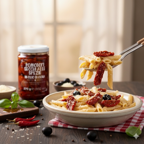 Pomodori secchi 60%, olio di oliva 40%, sale, aceto di vino, spezie naturali.